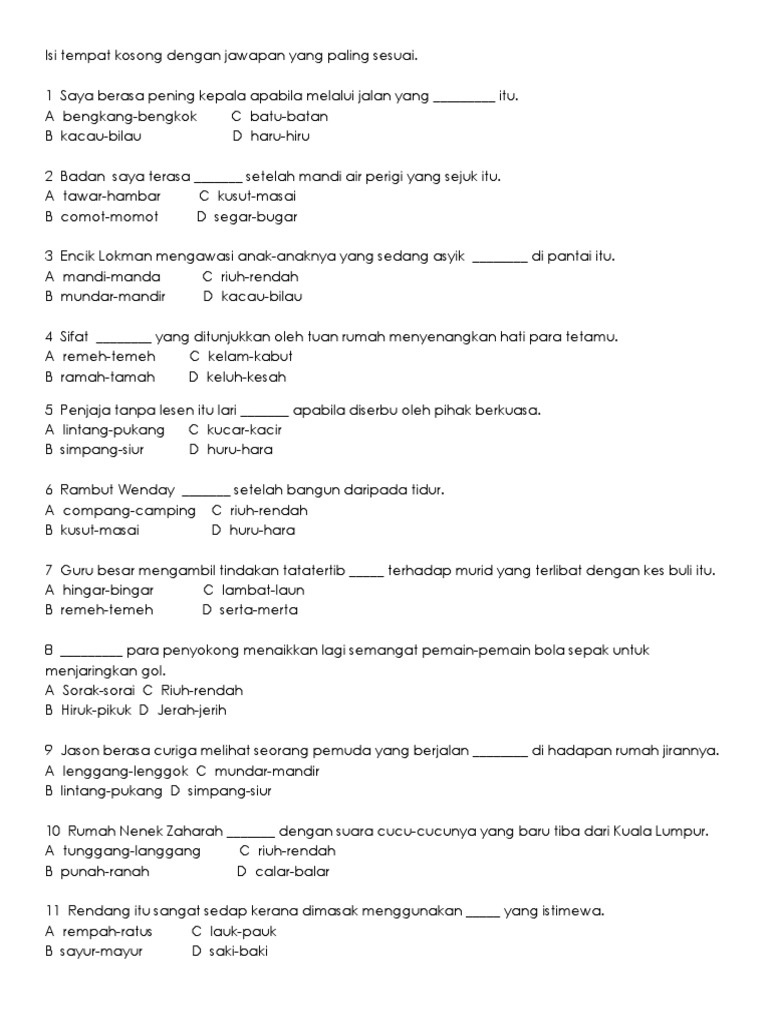 Contoh Soalan Kata Ganda Upsr Soalan Ac