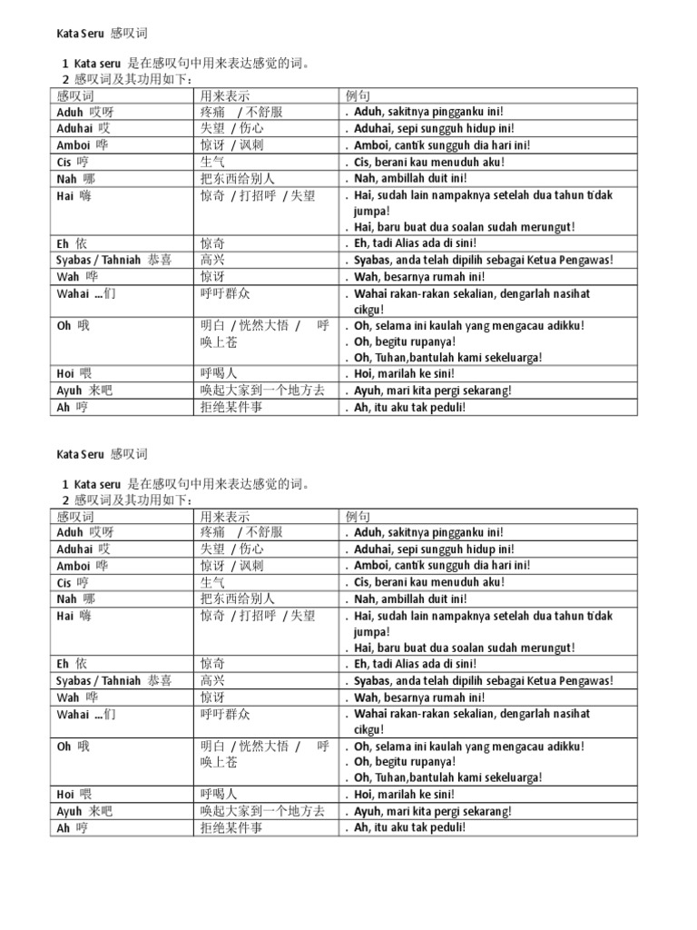 Kata Seru Bahasa Malaysia Tahun 3 Docx