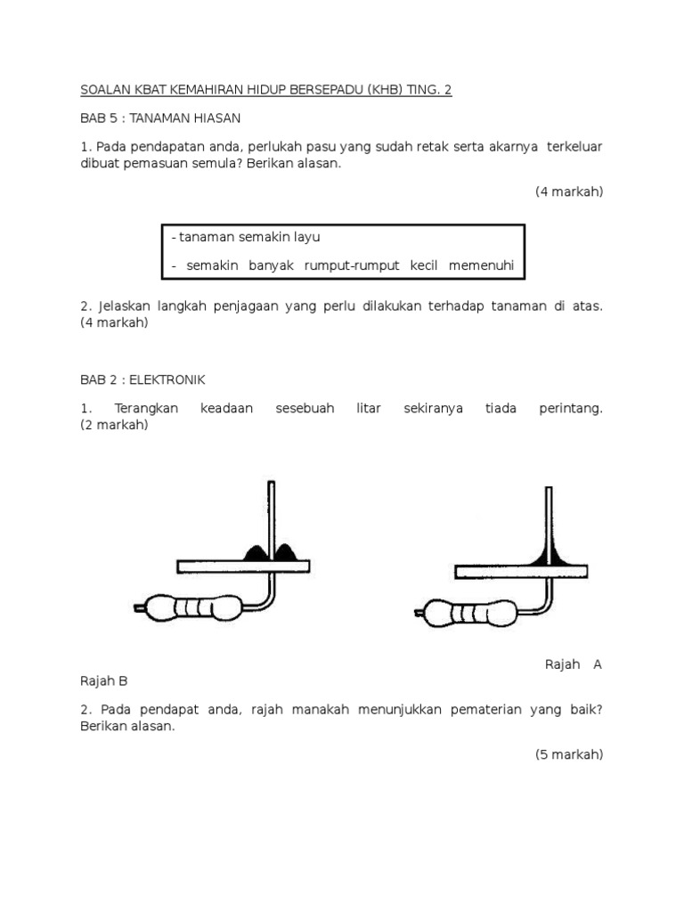 Contoh Kertas Soalan Kemahiran Hidup Ert Tingkatan Dua Pdf Document