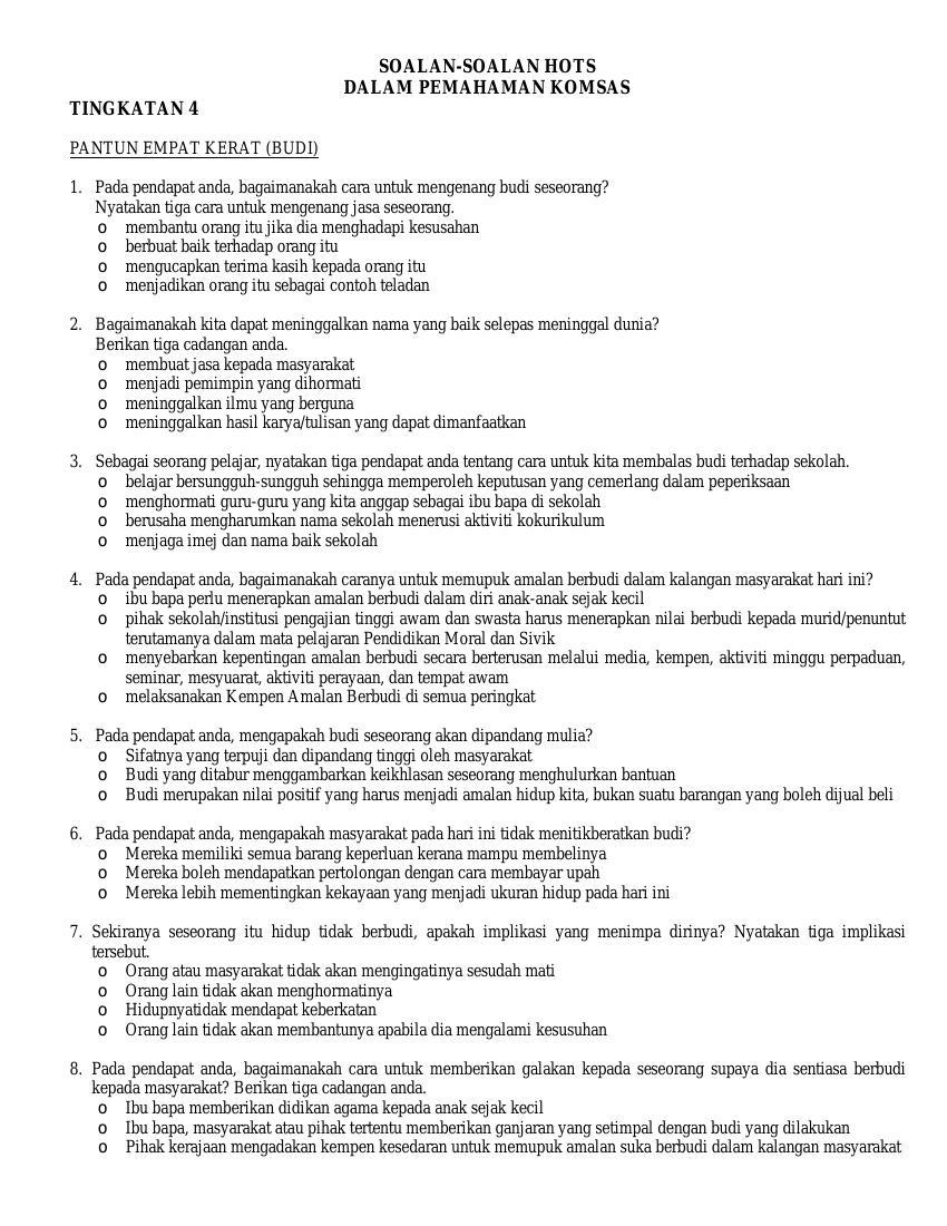 Contoh Soalan Komsas Bm Tingkatan 4 Resepi Book F