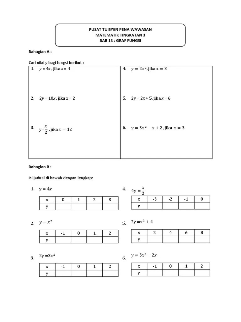 Soalan Graf Fungsi Tingkatan 2 Tersoal N