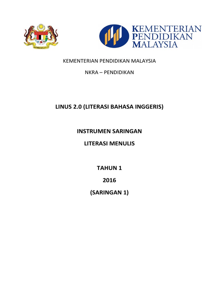 Instrumen Literasi B Inggeris Menulis Tahun 1 Pdf