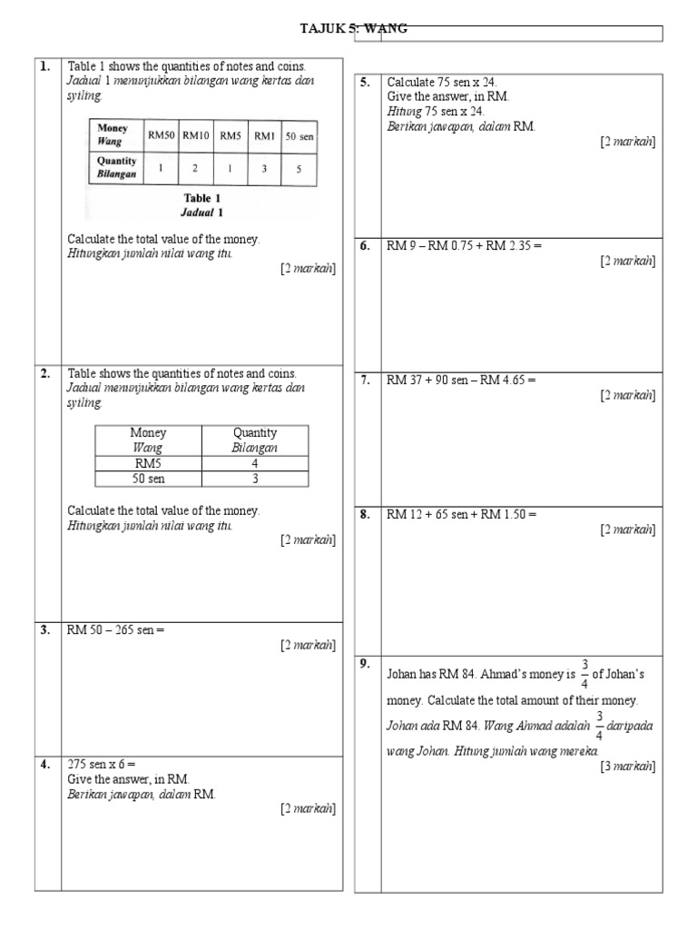 Soalan Bahagi Wang Tahun 3 14 Descargar