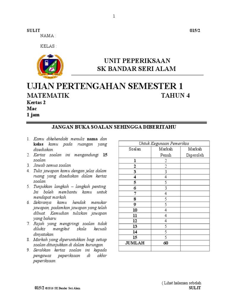Bank Soalan Ujian Mac 2018 Tahun 4 Kssr