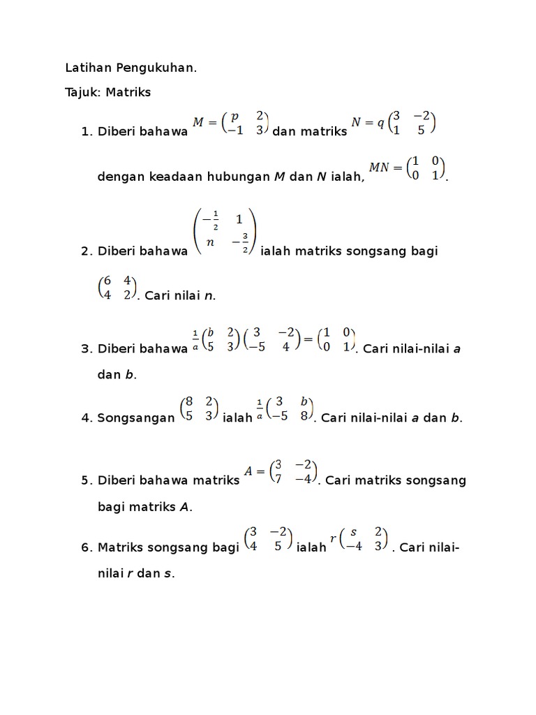 Latih Tubi Matematik Matrik Spm