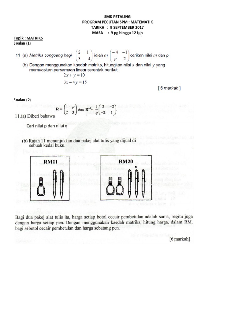 Soalan Matriks Tingkatan 5 Pdf