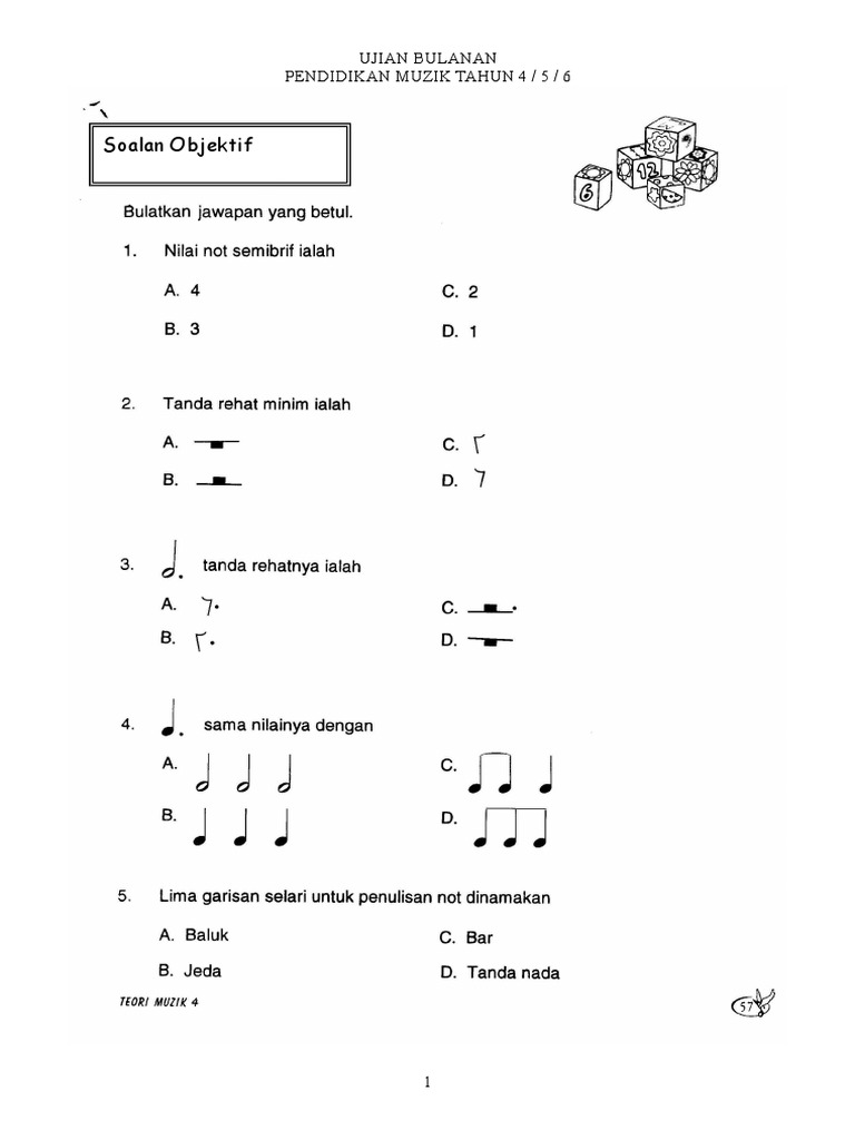 Soalan Objektif Ujian Bulanan Pendidikan Muzik Tahun 4 5 6