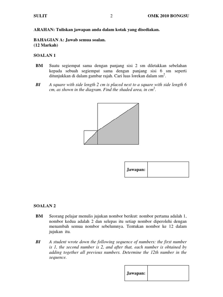 Contoh Soalan Olympiad Matematik Kebangsaan Soalan Am