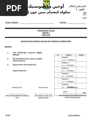 Contoh Soalan Ujian Pendidikan Islam Tahun 1 Kssr Selangor S