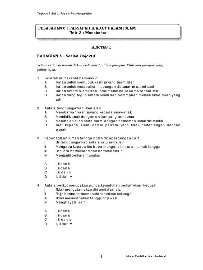 Soalan Pendidikan Islam Tingkatan 5 Perkahwinan