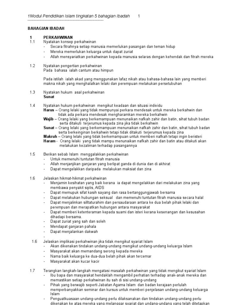 Nota Padat Pendidikan Islam Rancangan Pengajaran Harian Perkahwinan Tingkatan 5