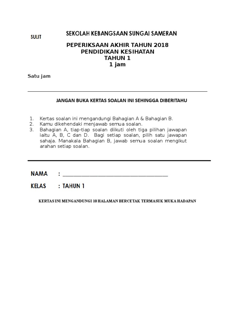 Pelbagai Pentaksiran Pertengahan Tahun Pendidikan Kesihatan Tahun 1 Yang Bernilai Khas Untuk Para Ibubapa Download Pekeliling Terbaru Kerajaan