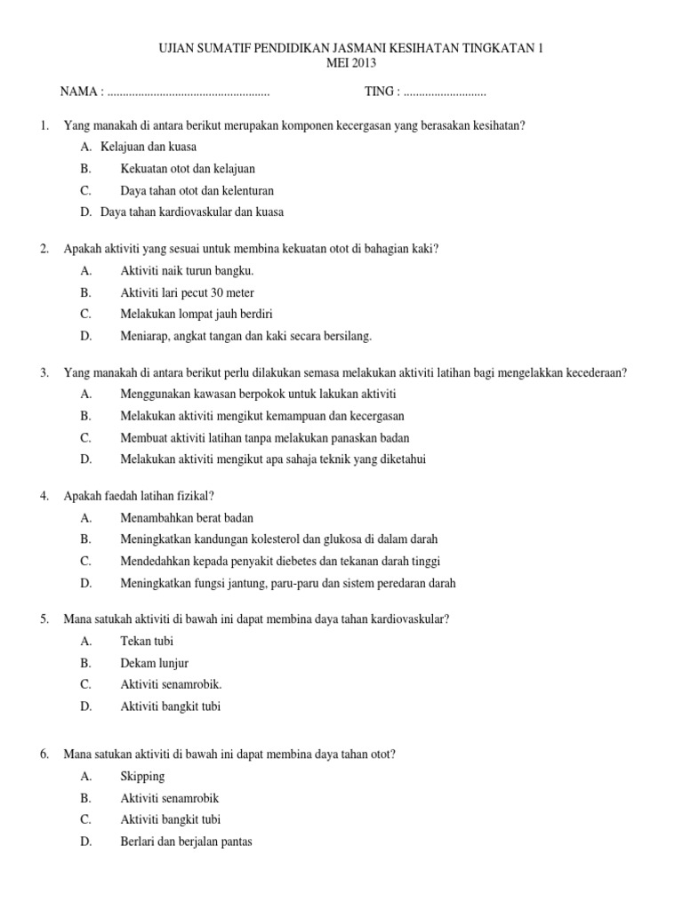 Soalan pendidikan kesihatan tingkatan 1. Upt pjpk tahun 1 kssr semakan 2017. Koleksi soalan peperiksaan pertengahan tahun ppt tingkatan 1 jawapan k. Soalan pjpk tingkatan 1. Pendidikan jasmani tahun 2 3.