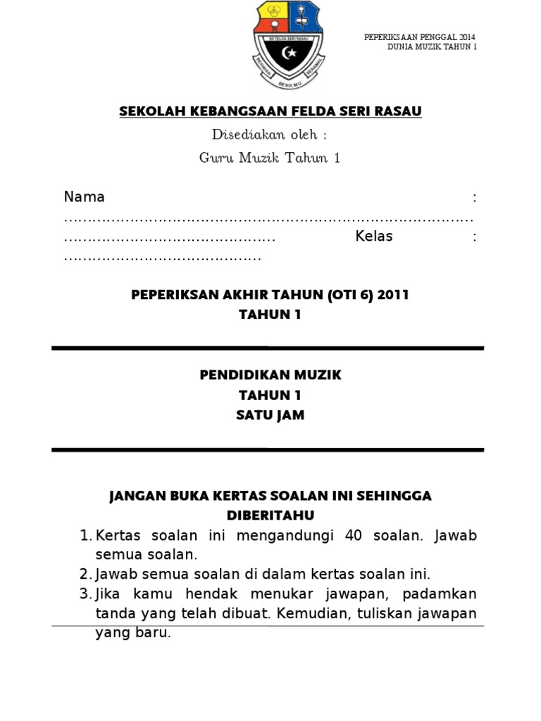 Contoh Soalan Muzik Tahun 1 Kssr Kecemasan S