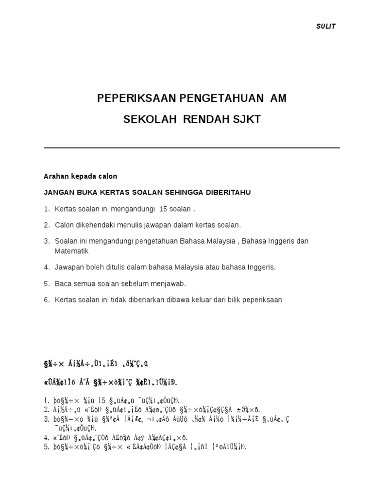 Contoh Soalan Pengetahuan Am Sekolah Menengah Soalan Br