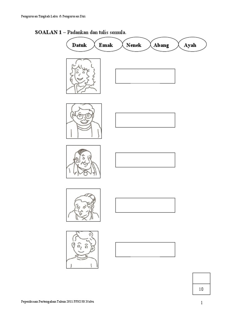Soalan Pengurusan Diri Tahun 1 Kbsr 2015