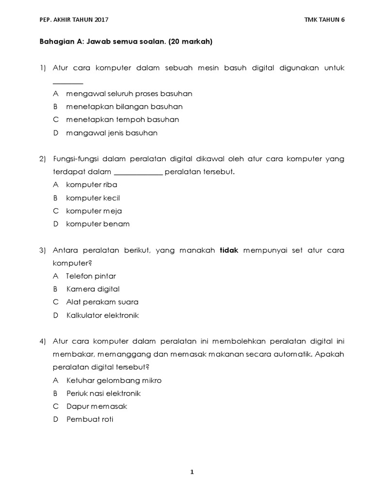 Soalan Tmk Teknologi Maklumat Komunikasi Tahun 6 Ujian 1 Bulan Mac 2017 Pages 1 12 Text Version Anyflip
