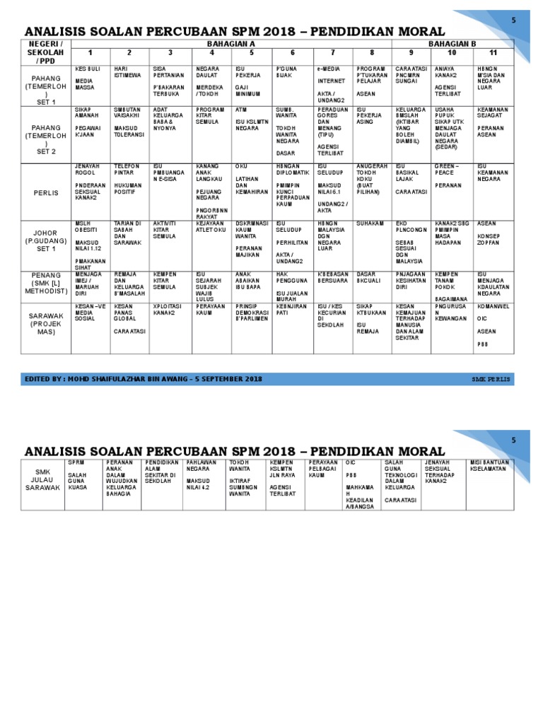 Analisis Soalan Percubaan Spm 2018 Pendidikan Moral