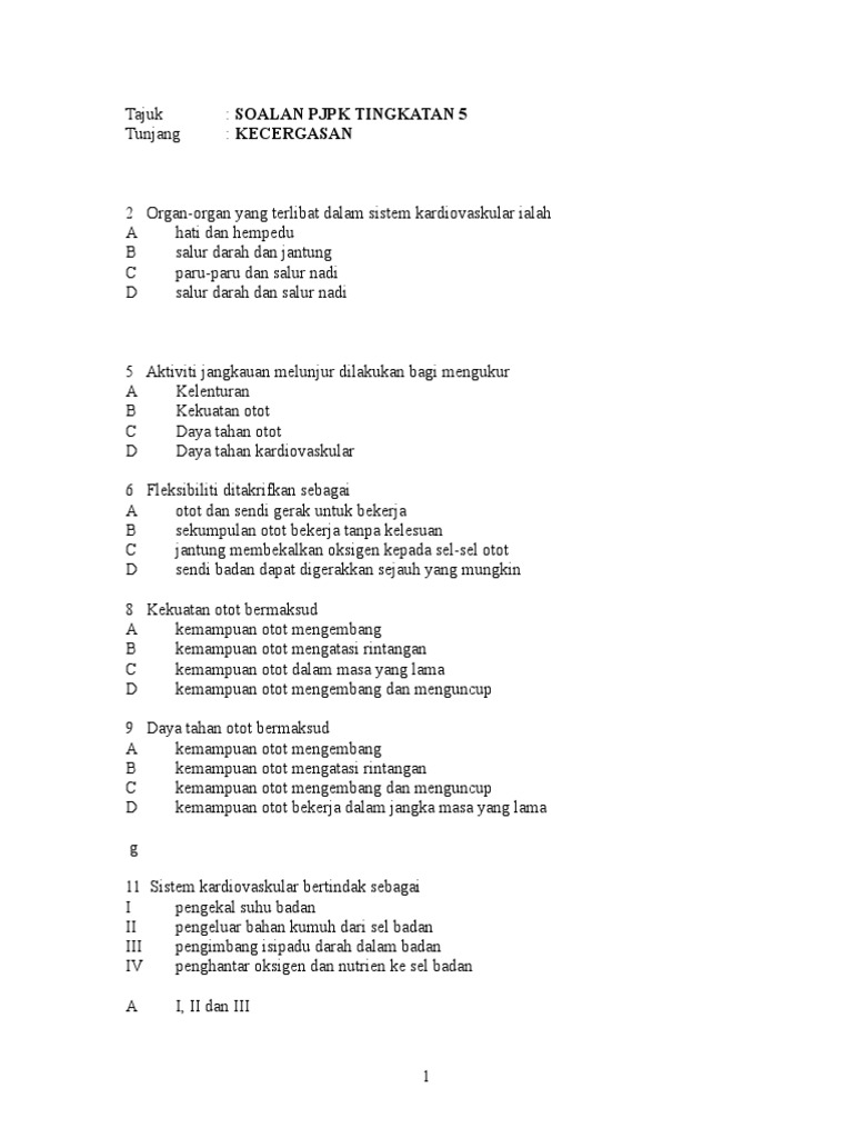 Soalan Peperiksaan Akhir Tahun Pendidikan Jasmani Dan Kesihatan Tingkatan 5 Terbaik Soalan Pjk Peralihan Ppt 2010 Skoloh