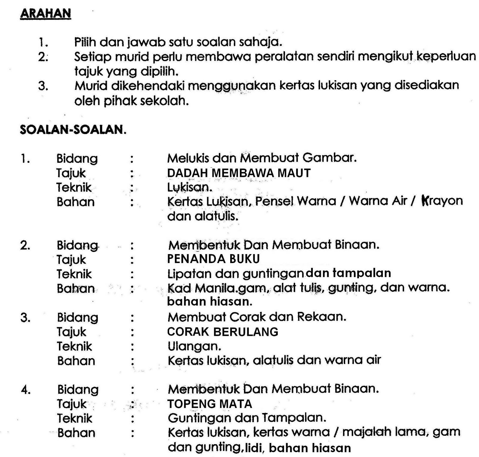 Soalan Peperiksaan Awal Tahun Pendidikan Seni Tahun 6 Ujian Bulan Mac 2018 Cikgu Ayu