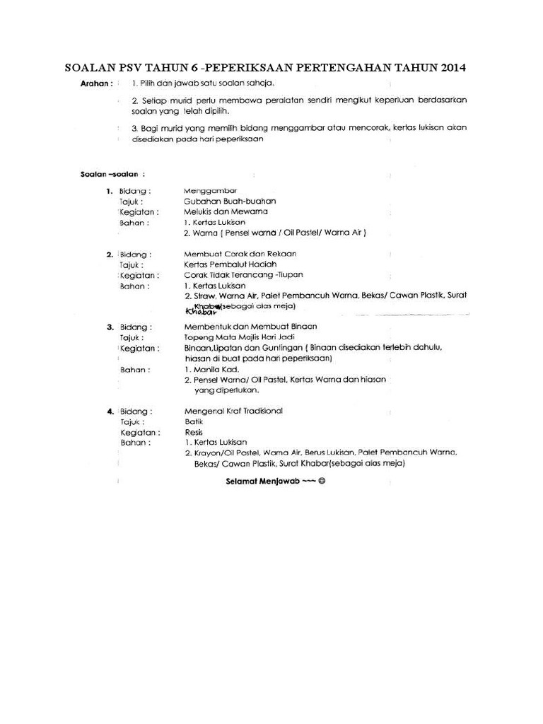 Bermacam Macam Peperiksaan Akhir Tahun Pendidikan Seni Visual Tahun 6 Yang Penting Khas Untuk Para Ibubapa Perolehi Pekeliling Terbaru Kerajaan