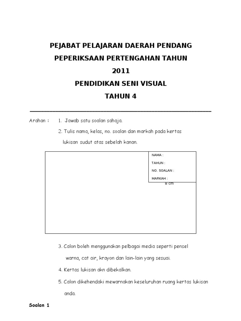 Soalan Kssr Peperiksaan Akhir Tahun Subjek Pendidikan Seni Visual Tahun 5
