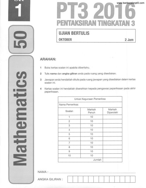Soalan Peperiksaan Pt3 Subjek Matematik
