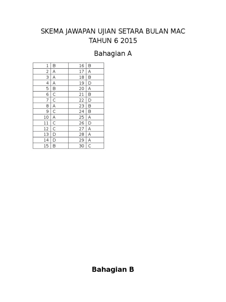 Skema Jawapan Ujian Setara Bulan Mac Tahun 6 2015