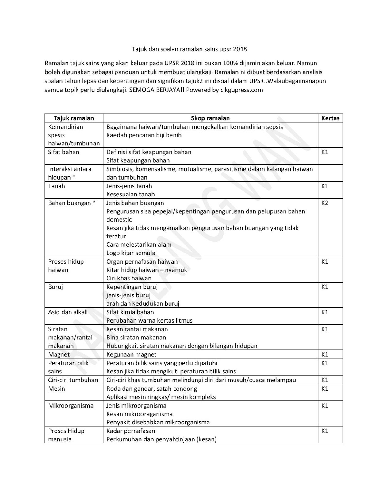 Contoh Soalan Ramalan Sains Pt3 2019 Viral Blog J