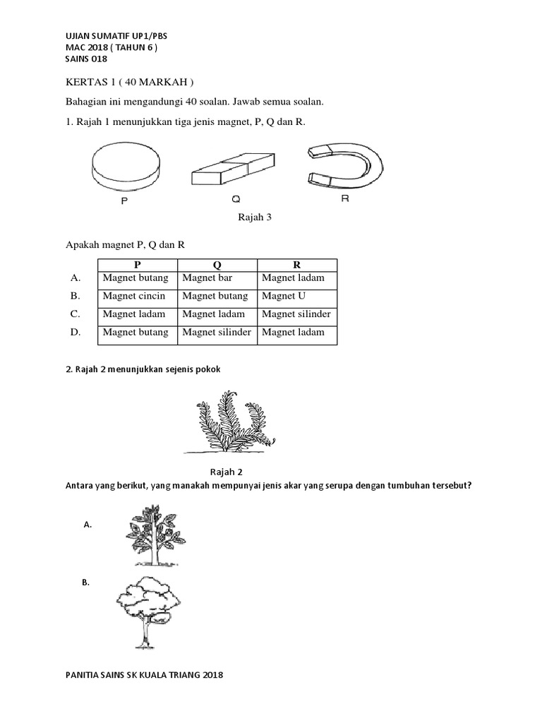 Soalan Sains Tahun 2 Ujian Mac Kssr 2018 Semakan