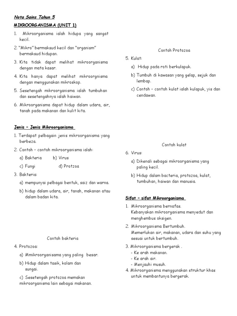 Nota Sains Tahun 6 Unit 3 Mikroorganisma Chang Tun Kuet