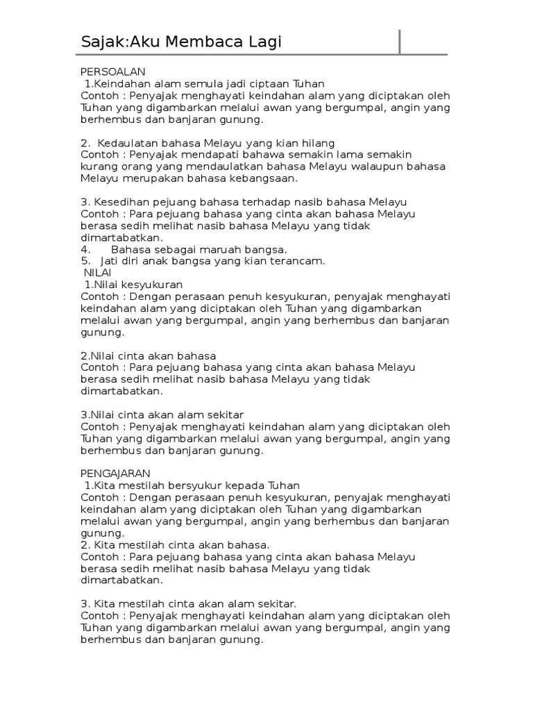 Bahasa Melayu Bahasa Malaysia Pmr Spm Komsas Tingkatan 4 Sajak Aku Membaca Lagi
