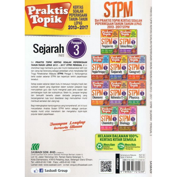 Sasbadi Praktis Peperiksaan Tahun Tahun Lepas 2013 2017 Stpm Sejarah Penggal 3 Shopee Malaysia