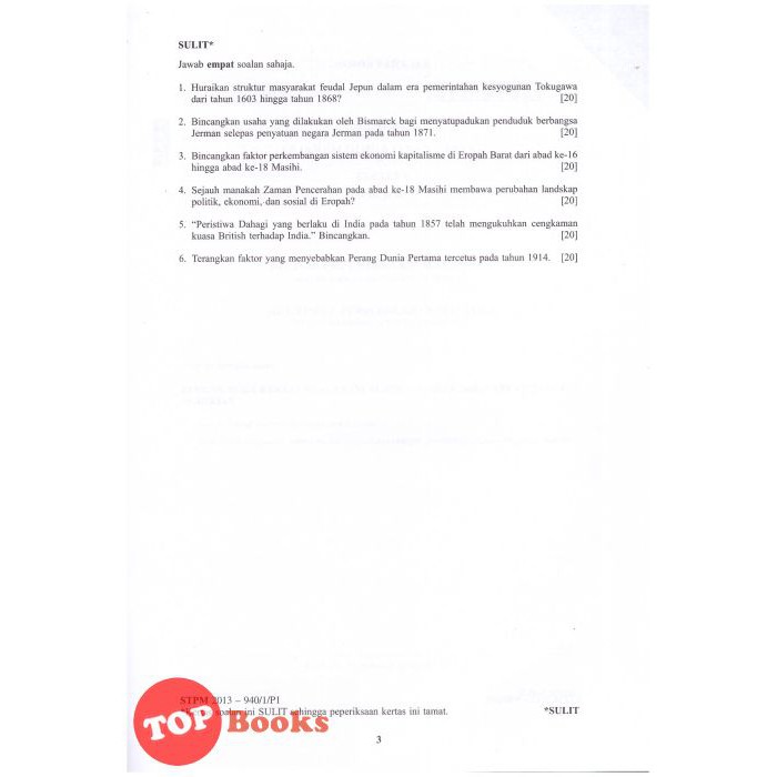 Kertas Soalan Peperiksaan Tahun Tahun Lepas Stpm 2013 2018 Sejarah S Topbooks Plt