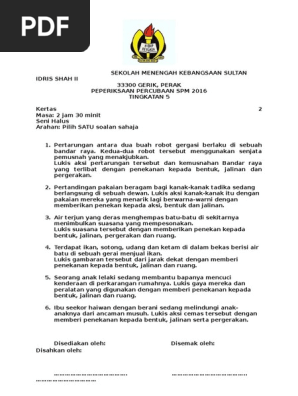 Soalan Kertas 2 Pendidikan Seni Visual Tingkatan 1 Docx Document