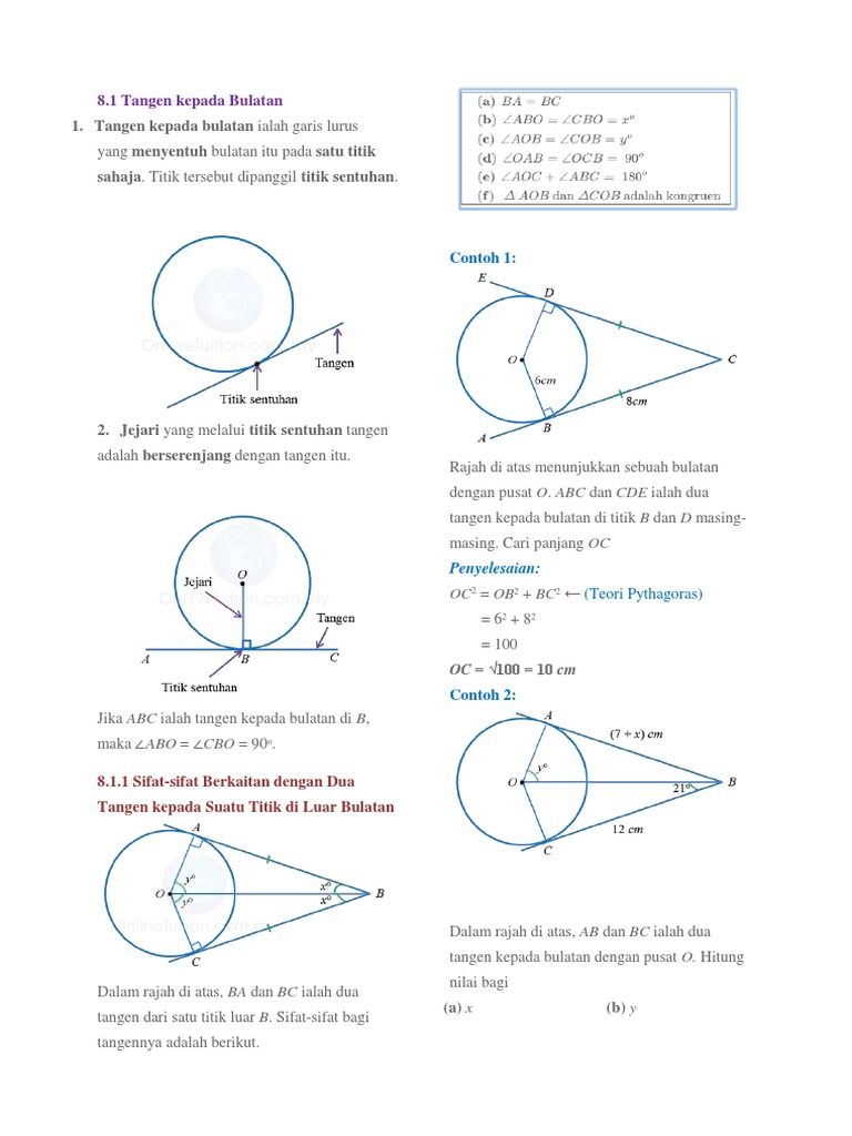 Nota Ulangkaji Spm Matematik Tingkatan 4 Tingkatan 5 8 1 Tangen Kepada Bulatan