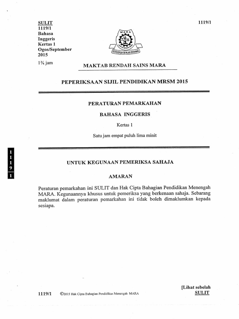Trial Mara English Spm 2015 Answer Scheme Paper 1