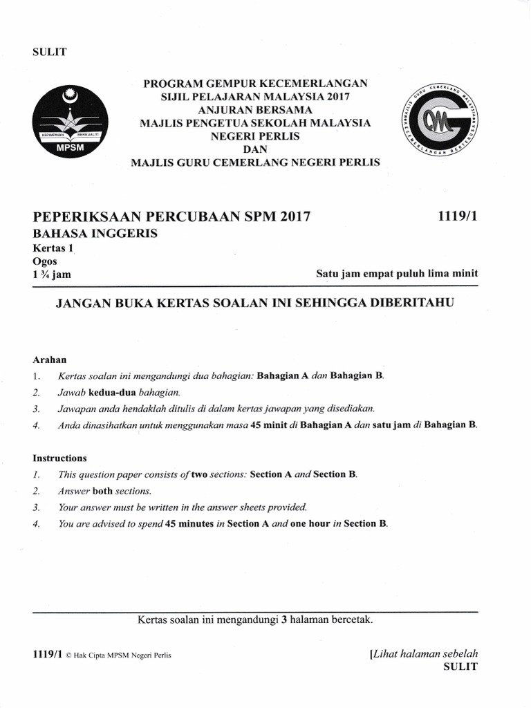 Perlis 2017 Spm Trial English 1119 P1 2