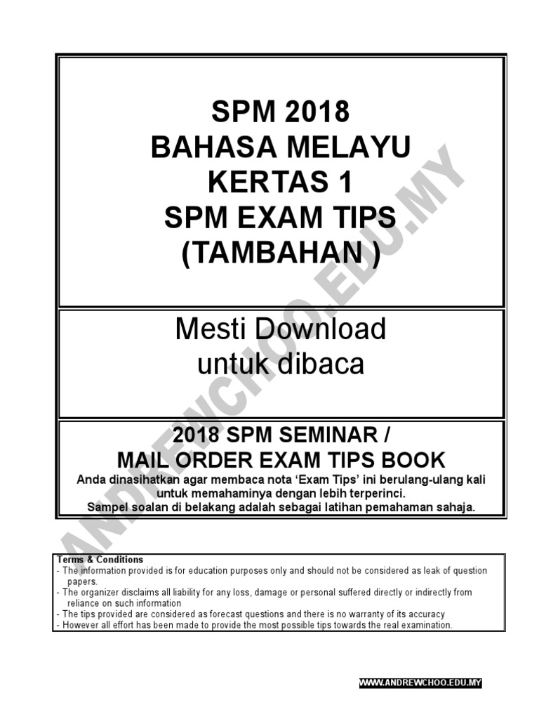 2018 Spm Bahasa Melayu Tips Tambahan
