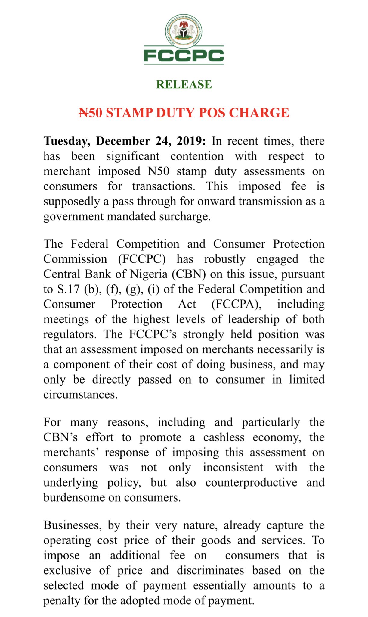 Tolu Ogunlesi On Twitter Merchants Are Now Prohibited From Penalising Or Otherwise Assessing Any Duty Costs Or Assessment Characterised As Stamp Duty On Consumers Who Select Point Of Sale Options To