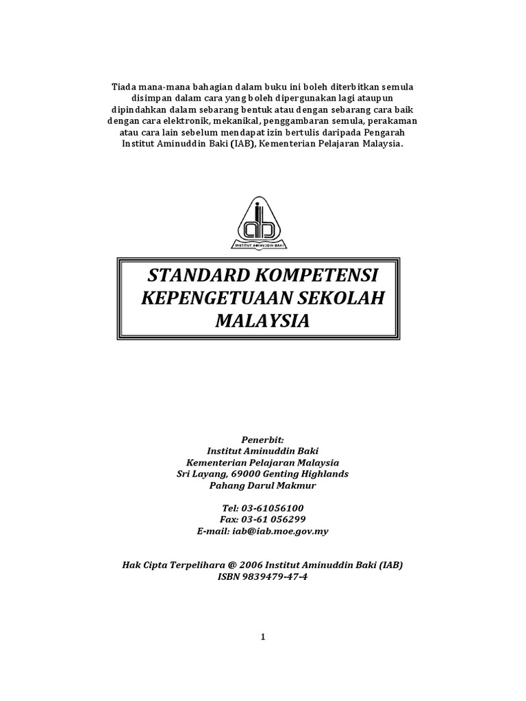 Standard Kompetensi Kepengetuaan Sekolah Malaysia Iab Institutional Repository