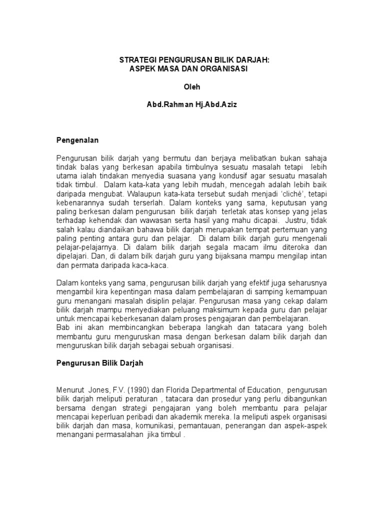 Strategi Pengurusan Bilik Darjah Aspek Masa Dan Organisasi Oleh Abd Rahman Hj Abd Aziz
