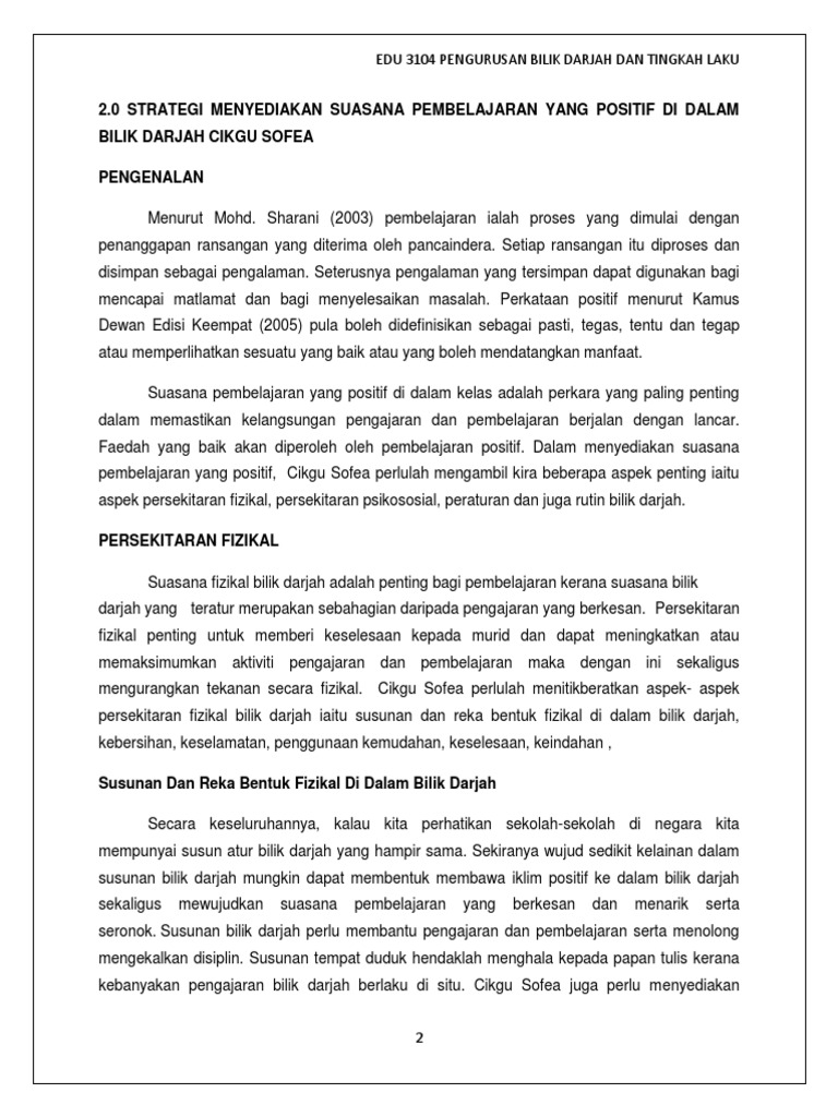 Strategi Menyediakan Suasana Pembelajaran Yang Positif Di Dalam Kelas 2