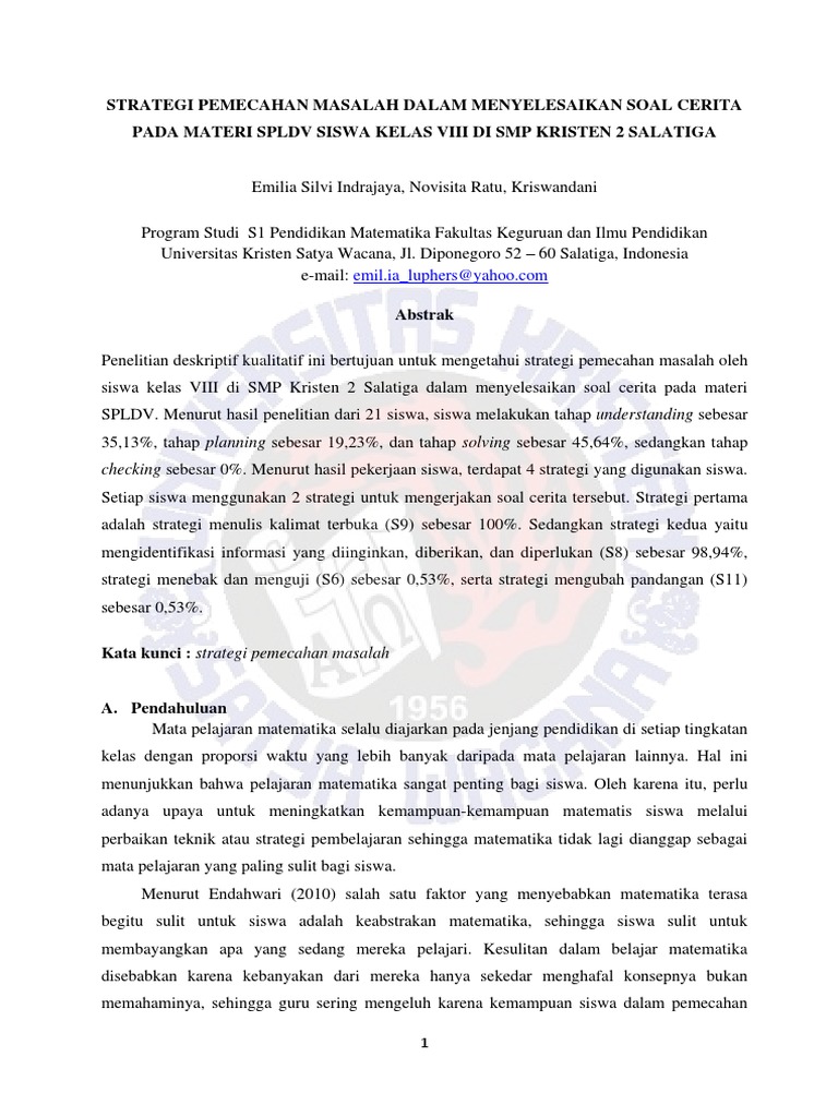 Pdf Strategi Pemecahan Masalah Matematika