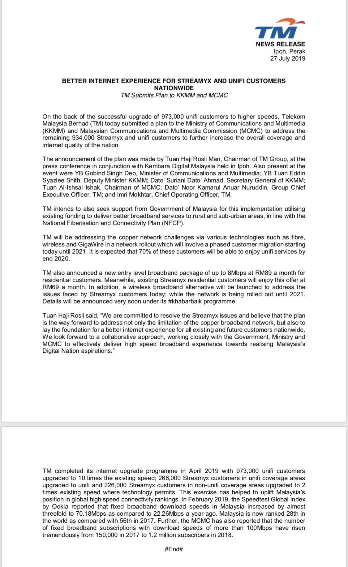 You don t need to worry anymore about slow page loading and browsing activity. With over 2 million customers comprising streamyx and unifi subscribers telekom malaysia tm as malaysia s broadband champion continues to fulfill customer demand for more diverse and comprehensive offerings with the introduction of the new and faster 8mbps bandwidth for streamyx and business broadband packages. Latest offering from as low as rm160 for all new and existing tm broadband subscribers. Tm information service the availability of the service at your premise area is however dependable on several technical aspects and requirements please refer to user requirements for.