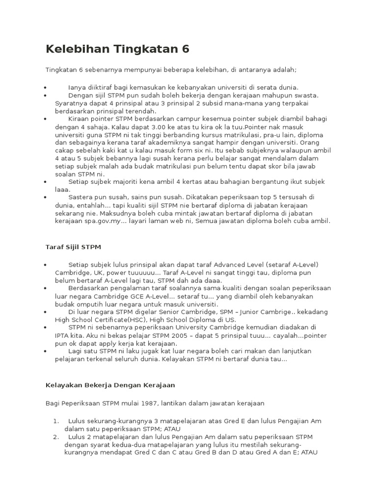 Subjek tingkatan 6 2018. Biasanya ada banyak pilihan subjek matapelajaran yang boleh anda pilih terpulang dari diri anda sendiri mahu pilih yang mana. Apa yang paling penting sepanjang berada di tingkatan enam korang akan mengenali lebih ramai kawan kawan sekepala dan setia. Belajar di tingkatan 6 seperti belajar di universiti tidak boleh harapkan pengajar nak bagi semua ilmu kerana ilmu bagi setiap subjek stpm ini ruang lingkup pembelajarannya terlalu luas sampaikan bidang sains pun berkait dengan sastera sastera pun berkait dengan sains. Perhatian buat anda yang berminat melanjutkan pelajaran di tingkatan 6.