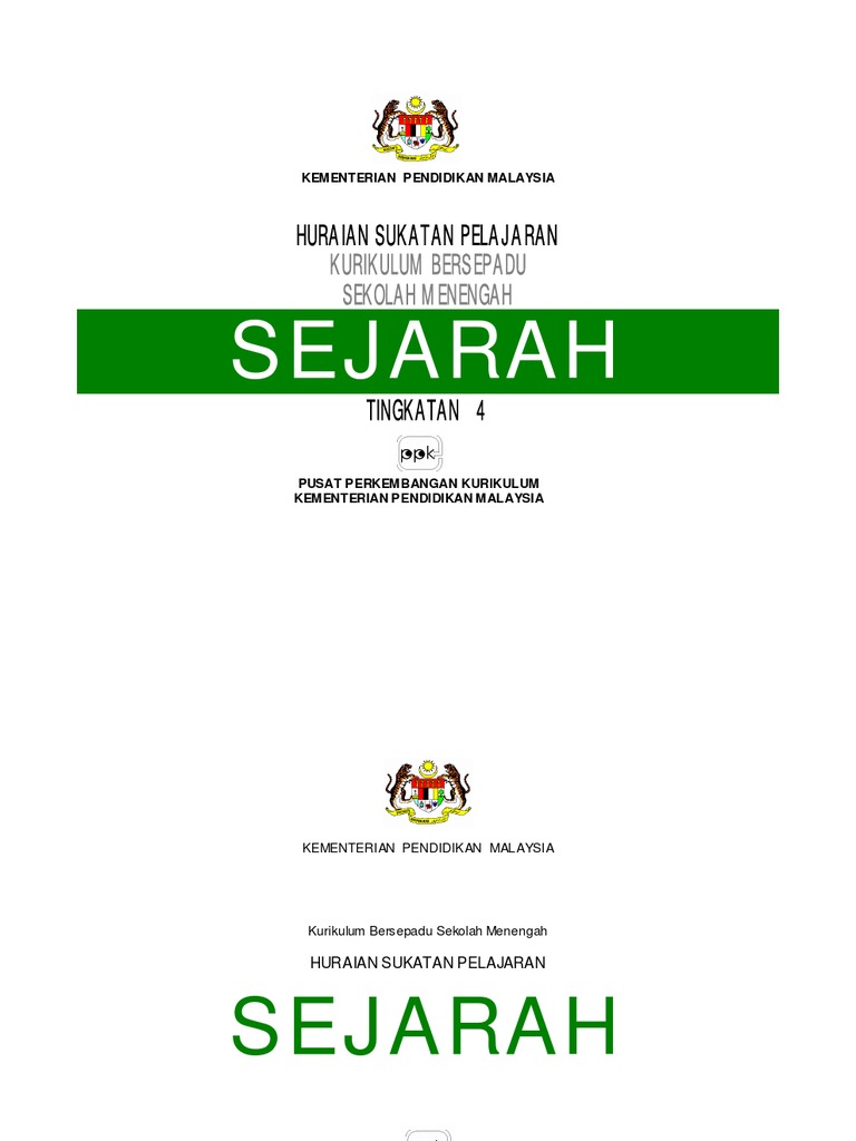 Huraian Sukatan Pelajaran Kurikulum Kementerian Pendidikan Malaysia Huraian Sukatan Pelajaran Kurikulum Bersepadu Sekolah Menengah Sejarah Tingkatan 1 2 3 Pusat Perkembangan Kurikulum