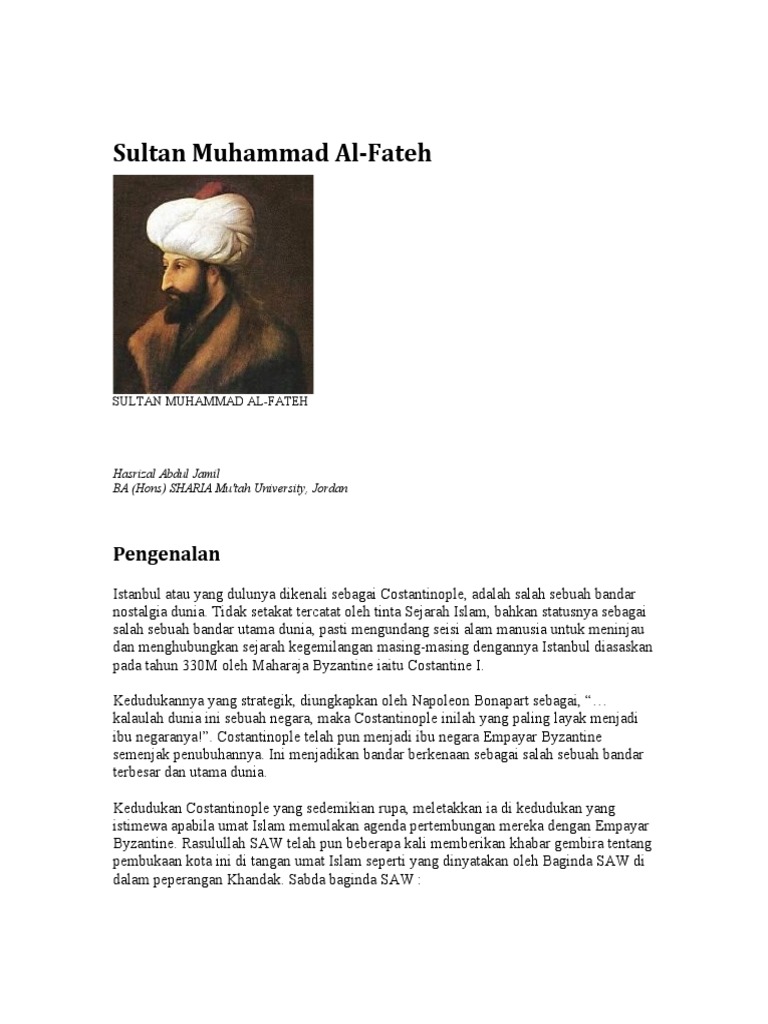 Sumbangan Sultan Muhammad Al Fatih Docx Sumbangan Sultan Muhammad Al Fatih Sultanmuhammad Al Fatih U2013 Khalifah Uthmaniyyah Latar Belakang Sultan Course Hero