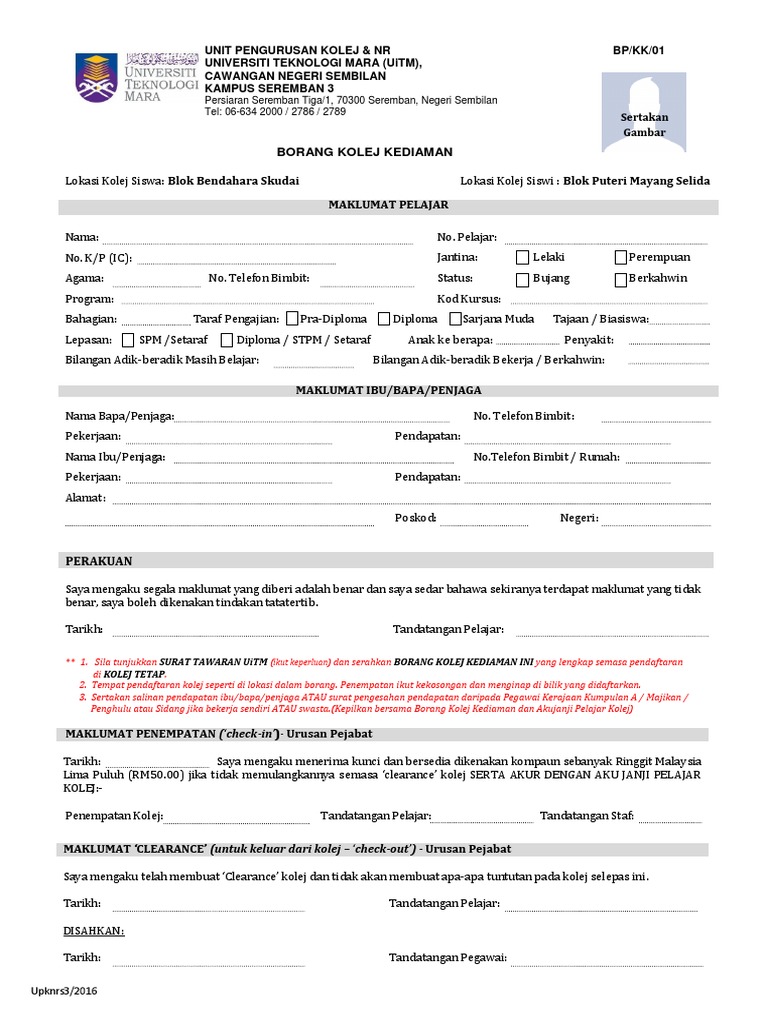 Https Ksb Uitm Edu My Images Borang Kolej Kediaman Selayang Tahun 4 5 Perubatan Pdf