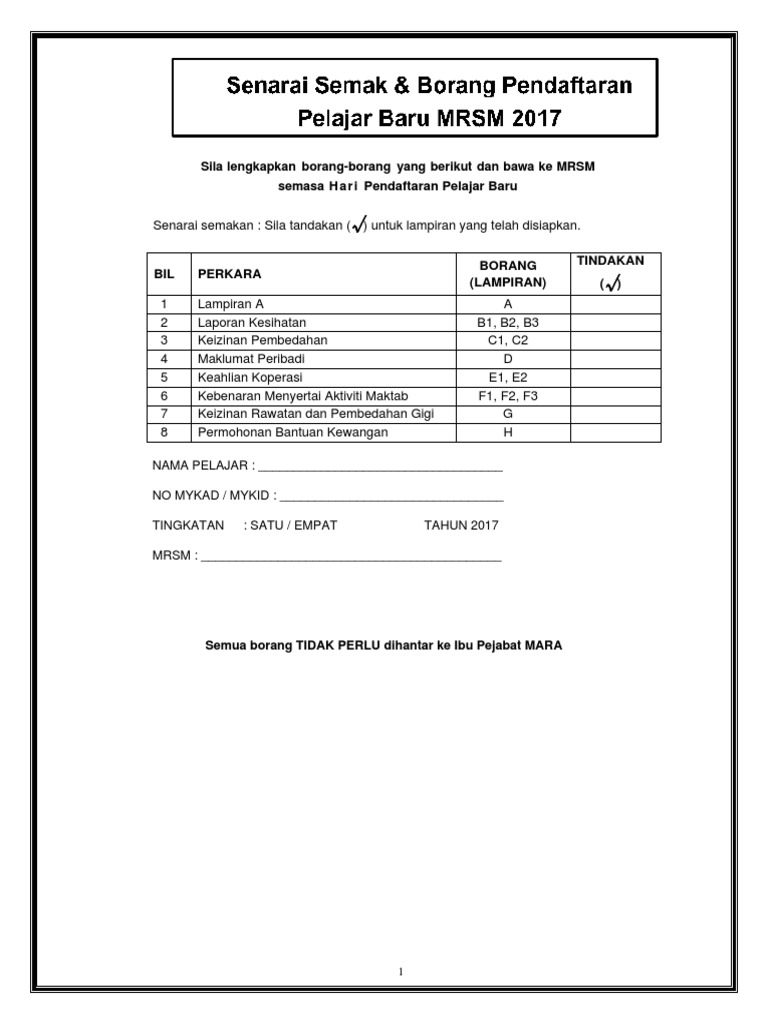 Sila Lengkapkan Borang Borang Yang Berikut Dan Bawa Ke Menerima Menolak Tawaran Untuk Belajar Di Maktab Rendah Sains Mara Tingkatan Nota Bayaran Telah Lampiran E2 Pdf Document